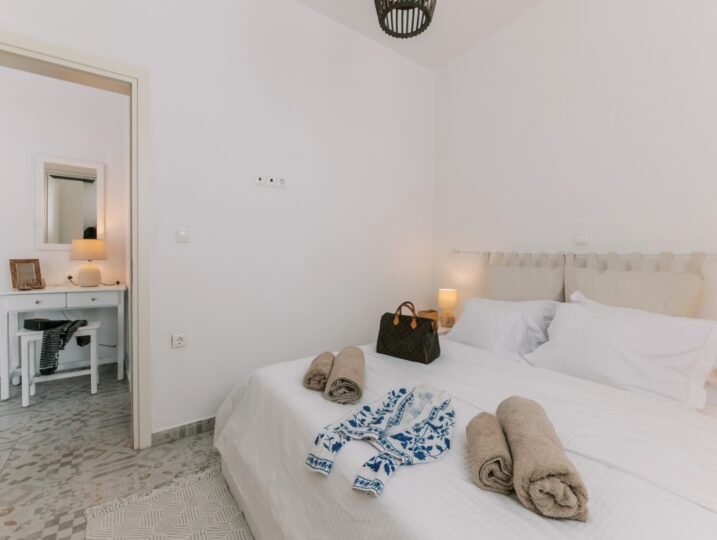 - Unit Onefeatures a comfortable bedroom, a fully equipped kitchen, and a bathroom, along with a charming balcony overlooking the village street—perfect for morning coffee or evening people-watching.