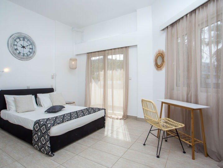 Each of our 11 studios is designed to offer the perfect blend of style and functionality, ensuring a comfortable and memorable stay. With modern amenities such as en-suite bathrooms, private balconies to soak up the Greek sunshine, and fully equipped kitchenettes, every detail is tailored to ensure your stay is as comfortable as it is memorable.