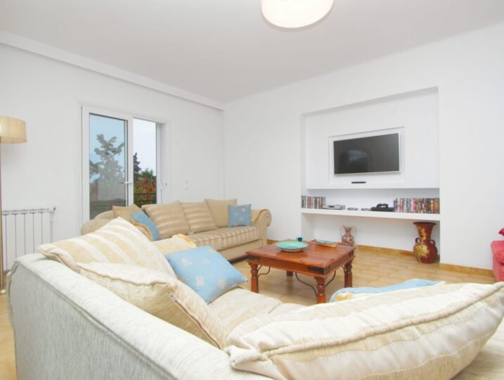 Upon arrival, you’ll be welcomed by the soothing scents of Mediterranean flora that surround the property. Set within 3,000m² of meticulously maintained gardens, the villa’s tranquil atmosphere is enhanced by olive groves, shaded trees, and a colorful array of plants and flowers, creating an idyllic setting for relaxation. One of Villa Dora’s standout features is its private 23m² swimming pool, surrounded by comfortable sun loungers and umbrellas, offering the perfect escape on hot summer days. The poolside barbecue area invites you to indulge in al fresco dining under the shade of trees, making it a wonderful space to entertain family and friends.