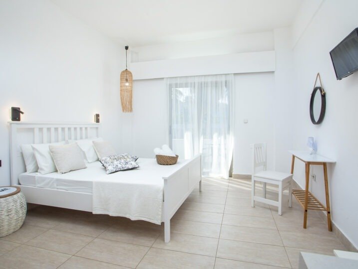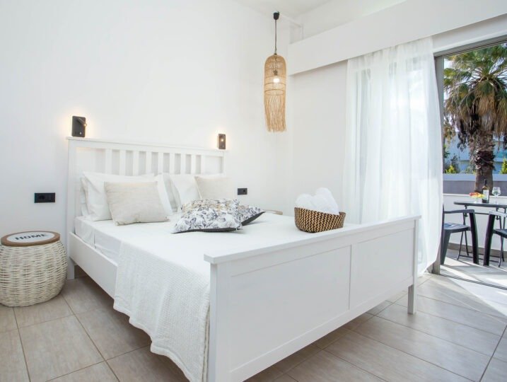 Each of our 11 studios is designed to offer the perfect blend of style and functionality, ensuring a comfortable and memorable stay. With modern amenities such as en-suite bathrooms, private balconies to soak up the Greek sunshine, and fully equipped kitchenettes, every detail is tailored to ensure your stay is as comfortable as it is memorable.