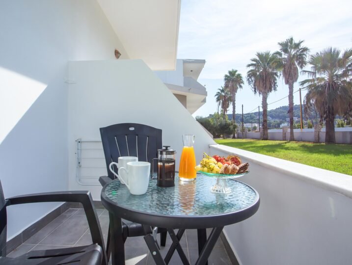 Each of our 11 studios is designed to offer the perfect blend of style and functionality, ensuring a comfortable and memorable stay. With modern amenities such as en-suite bathrooms, private balconies to soak up the Greek sunshine, and fully equipped kitchenettes, every detail is tailored to ensure your stay is as comfortable as it is memorable.