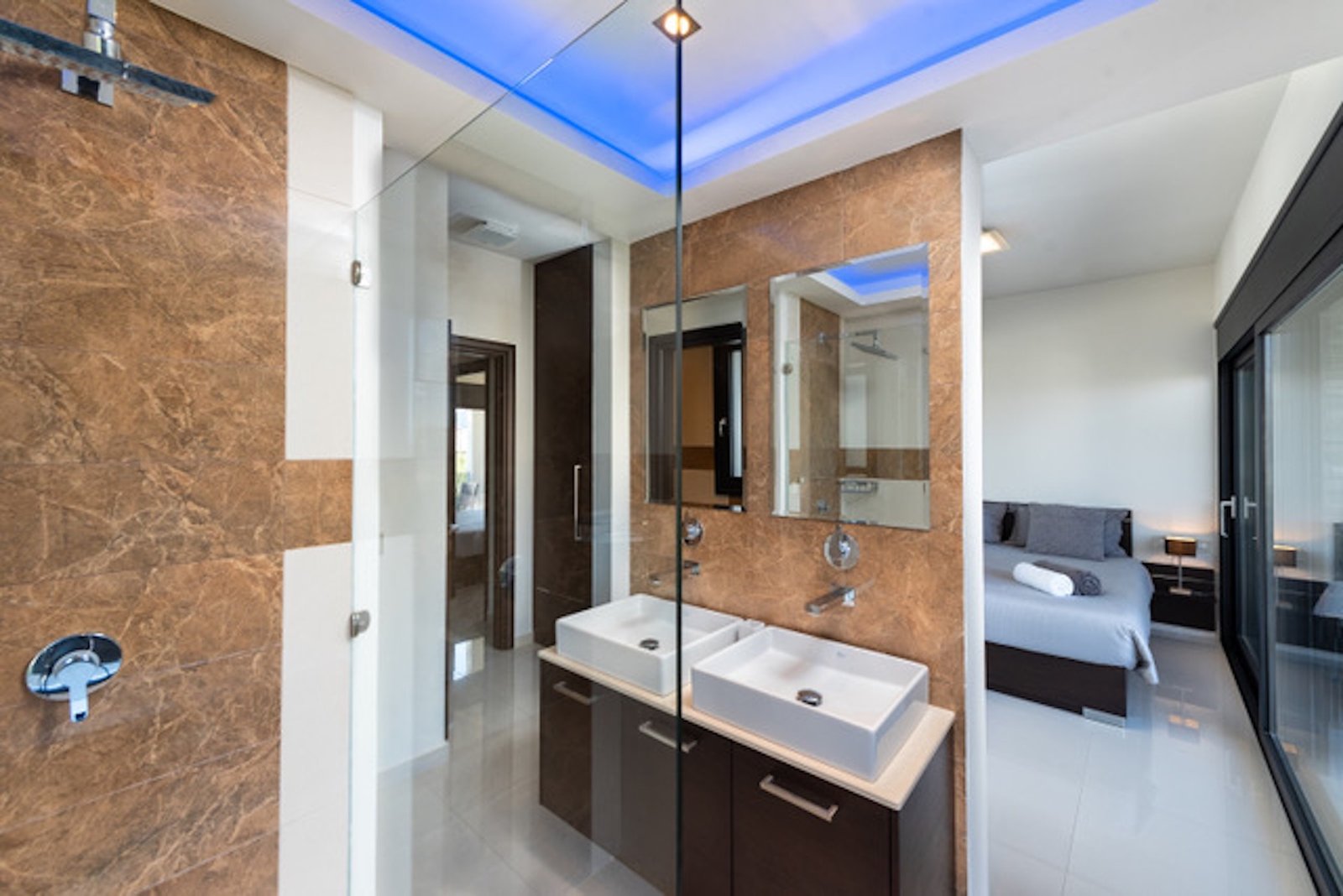 Each bedroom is a private haven, designed as a serene retreat. Floor-to-ceiling windows invite the outside in, ensuring that the mesmerizing views are a constant companion. The en-suite bathrooms, featuring rain showers , are appointed as spa-like sanctuaries, offering a space for rejuvenation and quiet reflection.