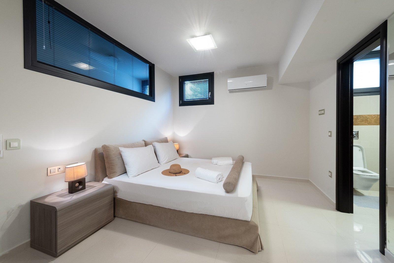 The villa’s living areas extend seamlessly to the outdoors, blurring the boundary between interior comfort and the majestic Mediterranean landscape. The private terrace and infinity pool appear as a liquid extension of the cerulean sky, creating a breathtaking vantage point from which to contemplate the panoramic vistas of the rolling hills and the sparkling Ixia Bay. It is a stage for sublime sunsets and starlit evenings, perfect for al fresco dining or contemplative solitude.